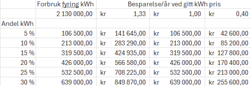 Under er det vist noen regneeksempler på mulig kostnadsbesparelse ved ulike energipriser og energibesparelse. Både Techem og Ista har referanser som kan skilte med opptil 30% besparelse.